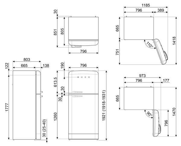 Smeg Frigorífico 2 Puertas FAB50LBL5 Bombino 1’92m Negro NoFrost 294L Clase E