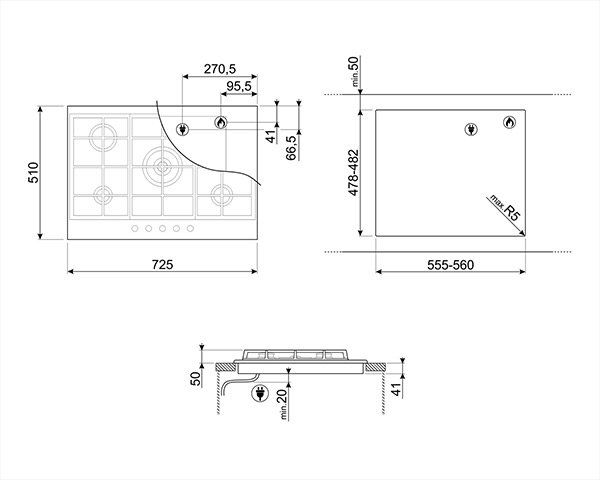 Smeg Encimera Gas PX175 5 Fuegos Inox 75cm