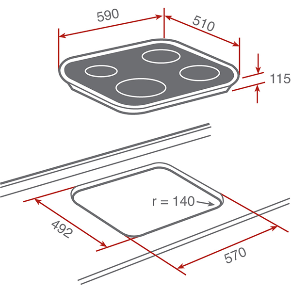 - Dimensiones aproximadas: 580 x 510 mm, ideal para encastres estándar.