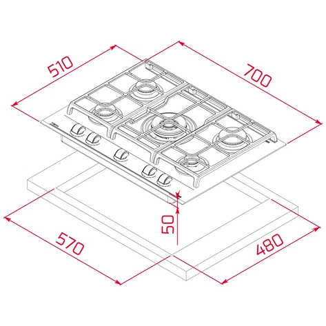 Teka Placa Gas GZC 75330 XBN Cristal 70 cm ExactFlame Gas Natural
